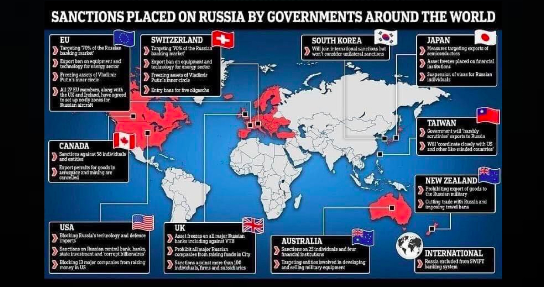 Poznámka InfoVojna: Reálny stav sveta alebo obrázok krajín sveta, ktoré uvalil na Rusko sankcie a zvyšok planéty: