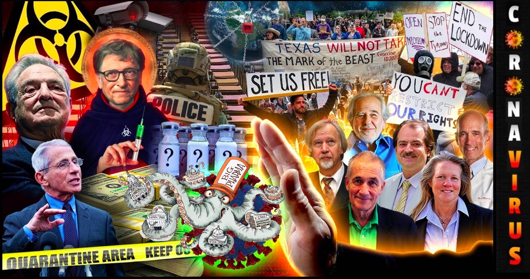 Ve skutečnosti tvrdí, že ničivé důsledky „vakcín“, lockdownů a uměle vytvořeného viru jsou záměrnými pokusy o depopulaci a destabilizaci společnosti jako součást globálně koordinovaného plánu na konsolidaci bohatství a moci v rukou několika málo osob.