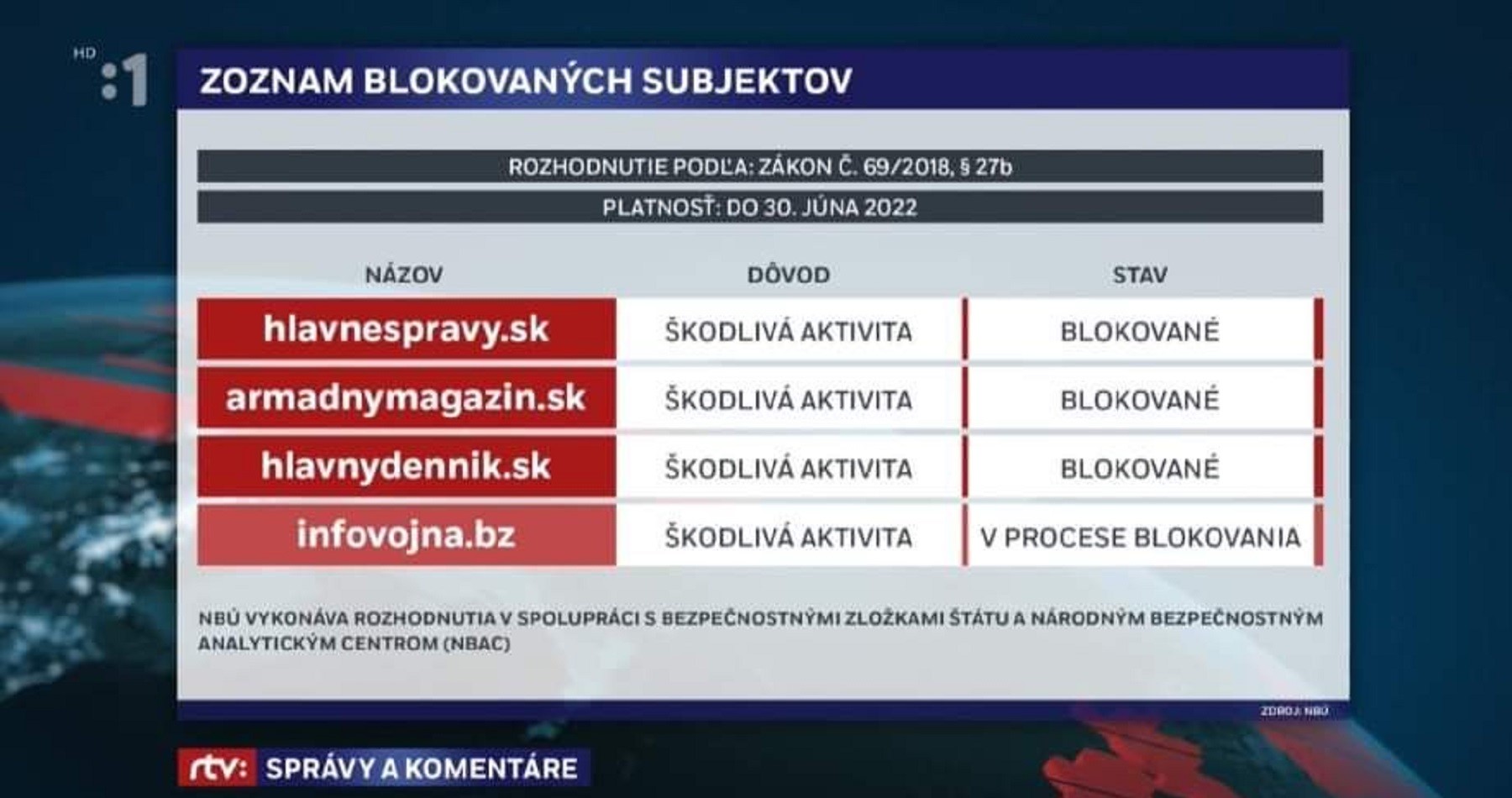 - Akej formy narušenia kybernetickej bezpečnosti Slovenskej republiky sa dopustili weby, ktoré NBÚ zablokoval?