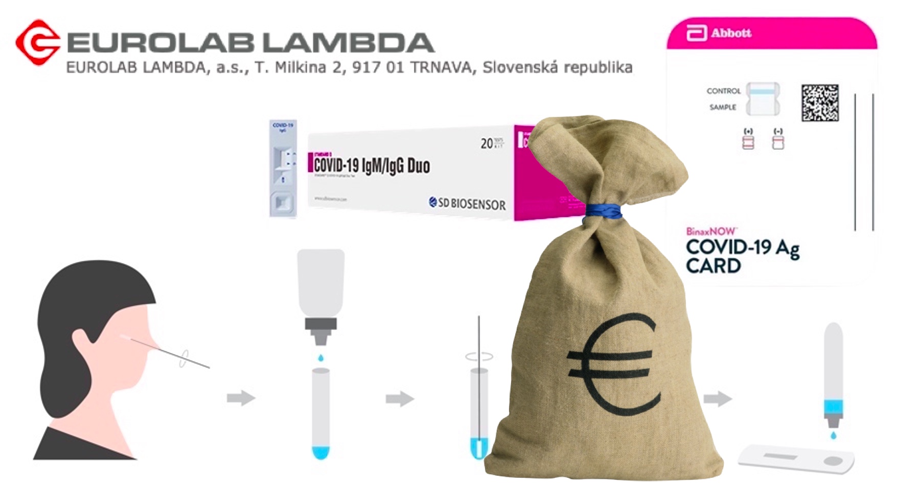 Správa štátnych hmotných rezerv podpísala so spoločnosťou Eurolab Lambda začiatkom októbra 2020 zmluvu na dodávku 500-tisíc kusov skríningových testov na diagnostiku ochorenia Covid-19 za 2,9 milióna eur, o dva týždne neskôr na ďalších 10 miliónov kusov za 43,4 milióna eur, neskôr ešte dve zmluvy na ďalšie testy spolu za viac ako 520-tisíc eur.