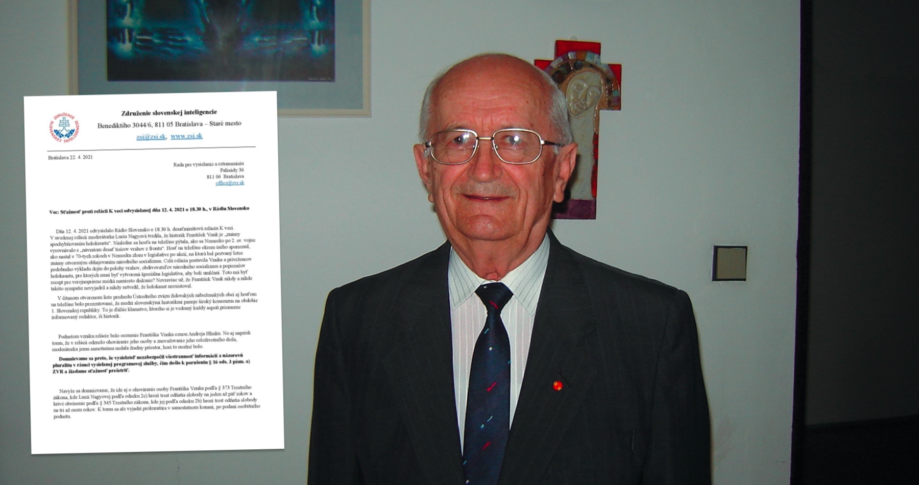 DOKUMENT: Sťažnosť na reláciu Slovenského rozhlasu, v ktorej moderátorka označila historika Františka Vnuka za spochybňovača holokaustu