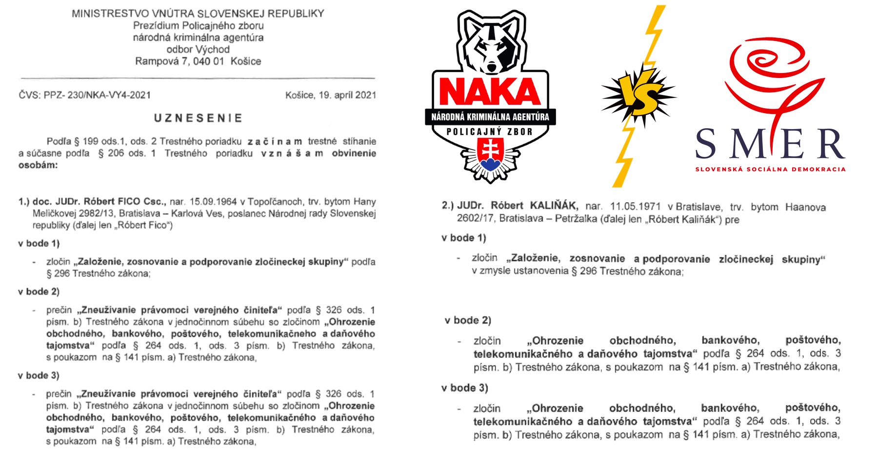 DOKUMENT: Uznesenie vyšetrovateľa NAKA o trestnom stíhaní Fica a Kaliňáka za založenie, zosnovanie a podporovanie zločineckej skupiny