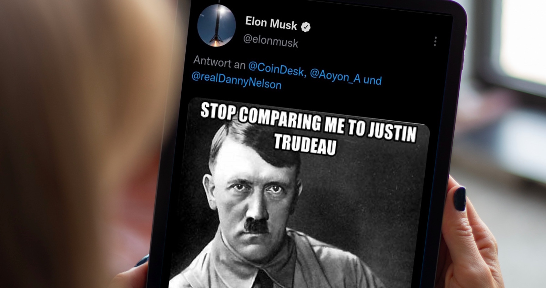 This morning, we called out @ElonMusk for tweeting an offensive meme comparing @CanadianPM Trudeau to Hitler.