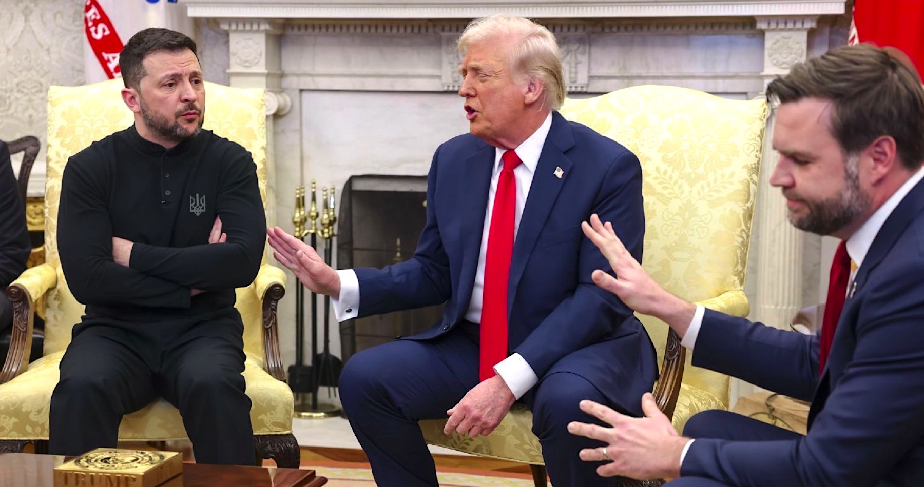 Na úvodnom stretnutí v Oválnej pracovni za prítomnosti médií sa však strhla hádka, ktorú podľa viacerých pozorovateľov vyvolal Vance, ktorý okrem iného označil Zelenského za nevďačného a vyčítal mu, že nie je ochotný rokovať s Ruskom o ukončení vojny. Stretnutie bolo následne predčasne ukončené a Trumpova vláda dočasne pozastavila dodávky vojenskej pomoci a zdieľanie spravodajských informácií pre Ukrajinu.