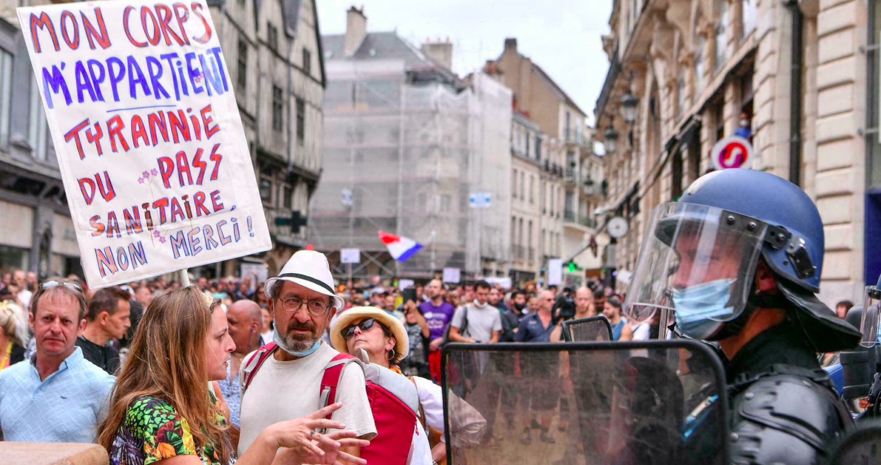 Již třetí sobotu po sobě se ve Francii konají velké demonstrace proti vládou nařízeným a parlamentem schváleným covid pasům. Zatímco před čtrnácti dny vyšlo do ulic 114 tisíc demonstrantů, před týdnem 163 tisíc, 31. července dosáhl počet protestujících proti hygienickému diktátu 204 tisíc (oficiální údaje ministerstva vnitra jsou, soudě podle videozáznamů, značně podhodnocené). 31. července se po celé zemi konalo 184 demonstrací.