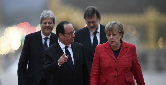 Paríž 7. marca - Šéfovia štátov či vlád Francúzska, Nemecka, Španielska a Talianska včera po večernom stretnutí vo francúzskom Versailles zverejnili spoločné vyhlásenie. V snahe zmäkčiť dopad tzv. brexitu v ňom vyzývajú na vytvorenie Európskej únie, ktorá umožní rôznym skupinám svojich členských štátov postupovať vlastným tempom.