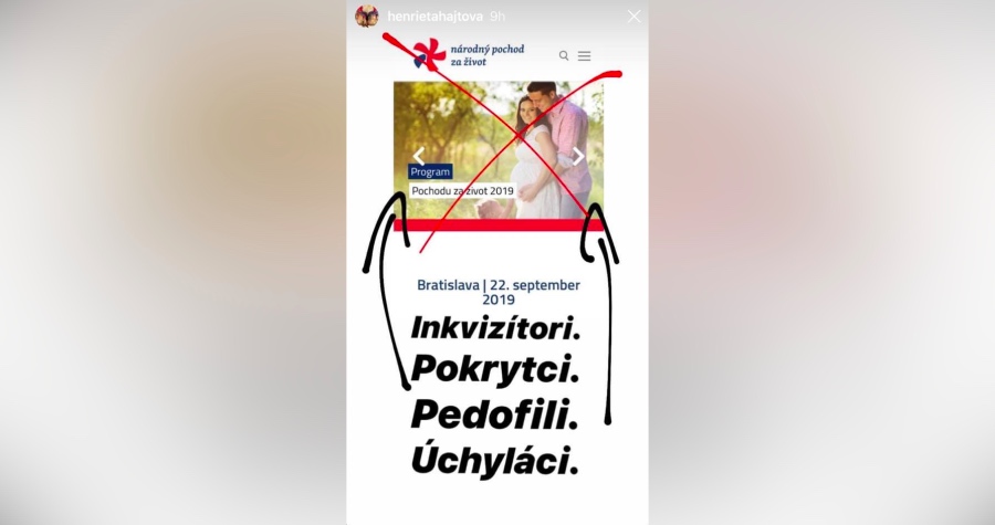 Príspevok dehonestujúci Národný pochod za život údajne zverejnila pracovníčka kancelárie prezidenta SR Henrieta Hajtová. Preškrtnutý obrázok s nápisom „inkvizítori, pokrytci, pedofili, úchyláci“ mal byť na Instagram pridaný v deň konania pochodu. Vtedy sa začal šíriť aj na sociálnych sieťach.