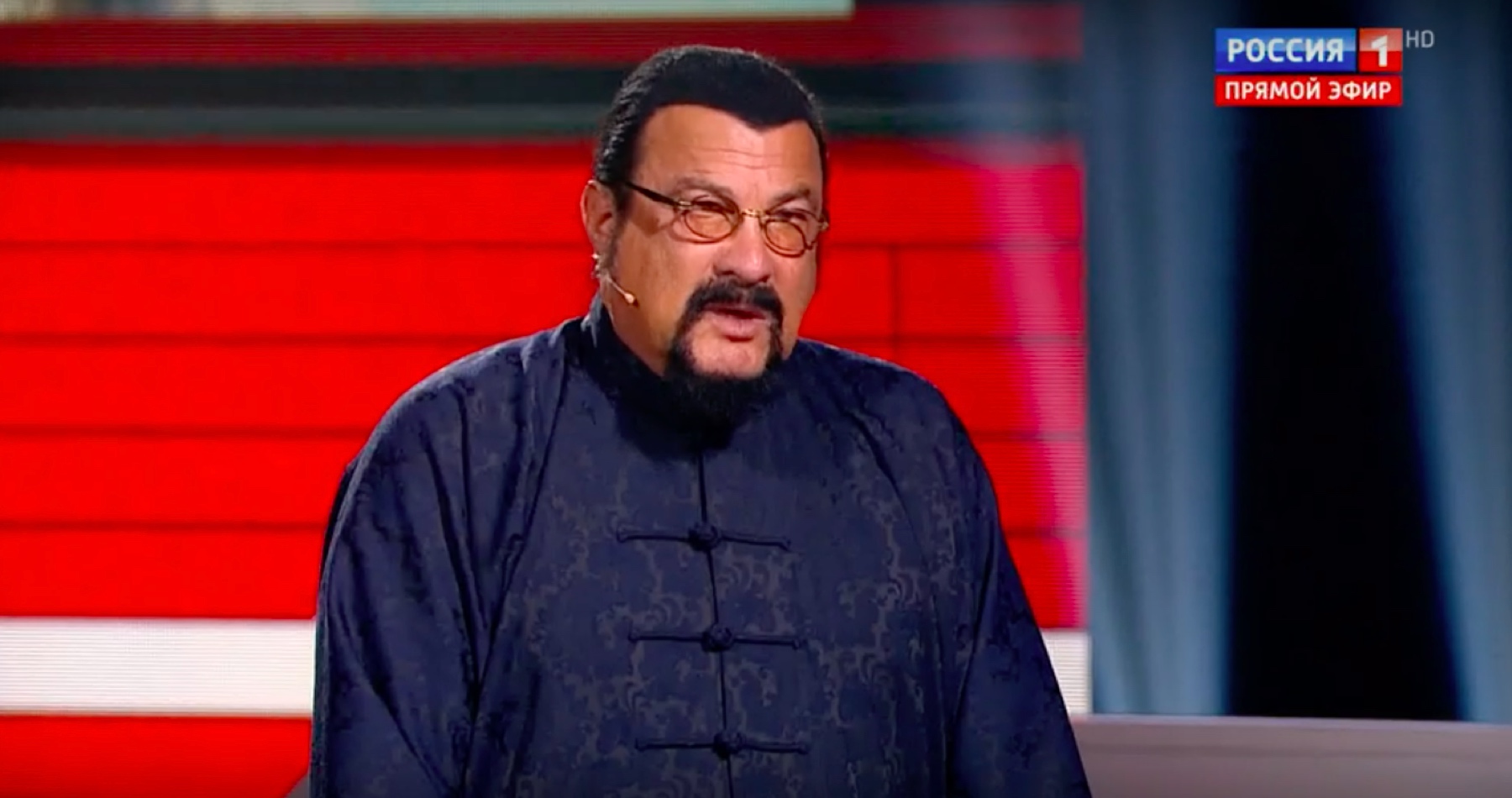 „Jsem Rus a jsem tady doma,“ řekl Steven Seagal na otázku, jestli mu podpora Ruska „nedělá problémy“ v Hollywoodu. Kromě toho Seagal už v roce 2014 obhajoval ruskou anexi Krymu a s moderátorem Solovjovem ho pojí osobní přátelství. Prokremelský moderátor byl na oslavě hercových 70. narozenin. „Každý z vás, všichni jste má rodina a přátelé. Stojíme a držíme pospolu v dobrém i zlém,“ sdělil Seagal v pořadu.