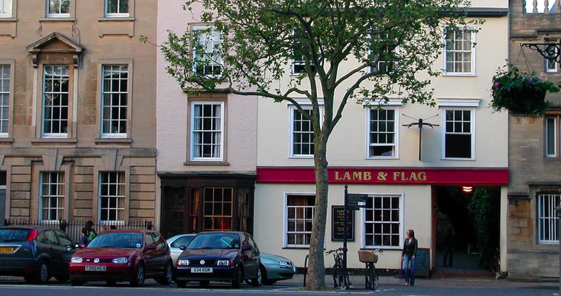 Lamb and Flag otvorili v roku 1566 v centre mesta. Je vo vlastníctve St John's College, ktoré je jednou z fakúlt Oxfordskej univerzity.