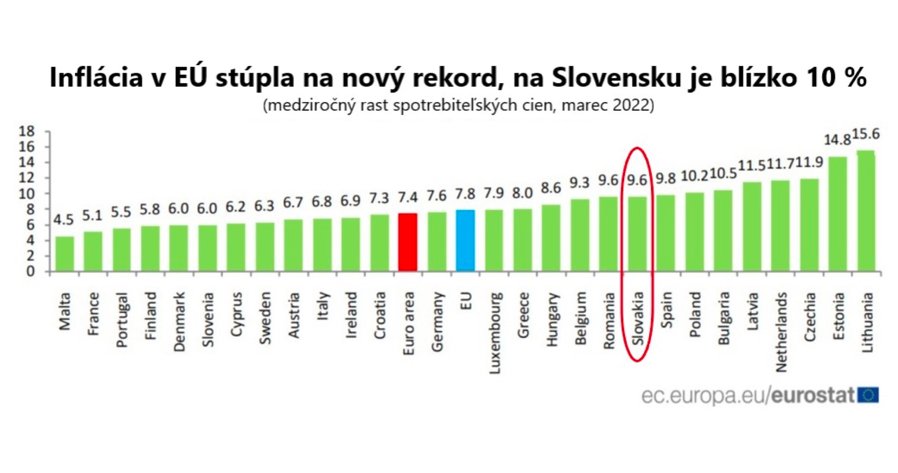 Slovensko mala v rámci EÚ deviatu najvyššiu infláciu, a to 9,6 percenta.