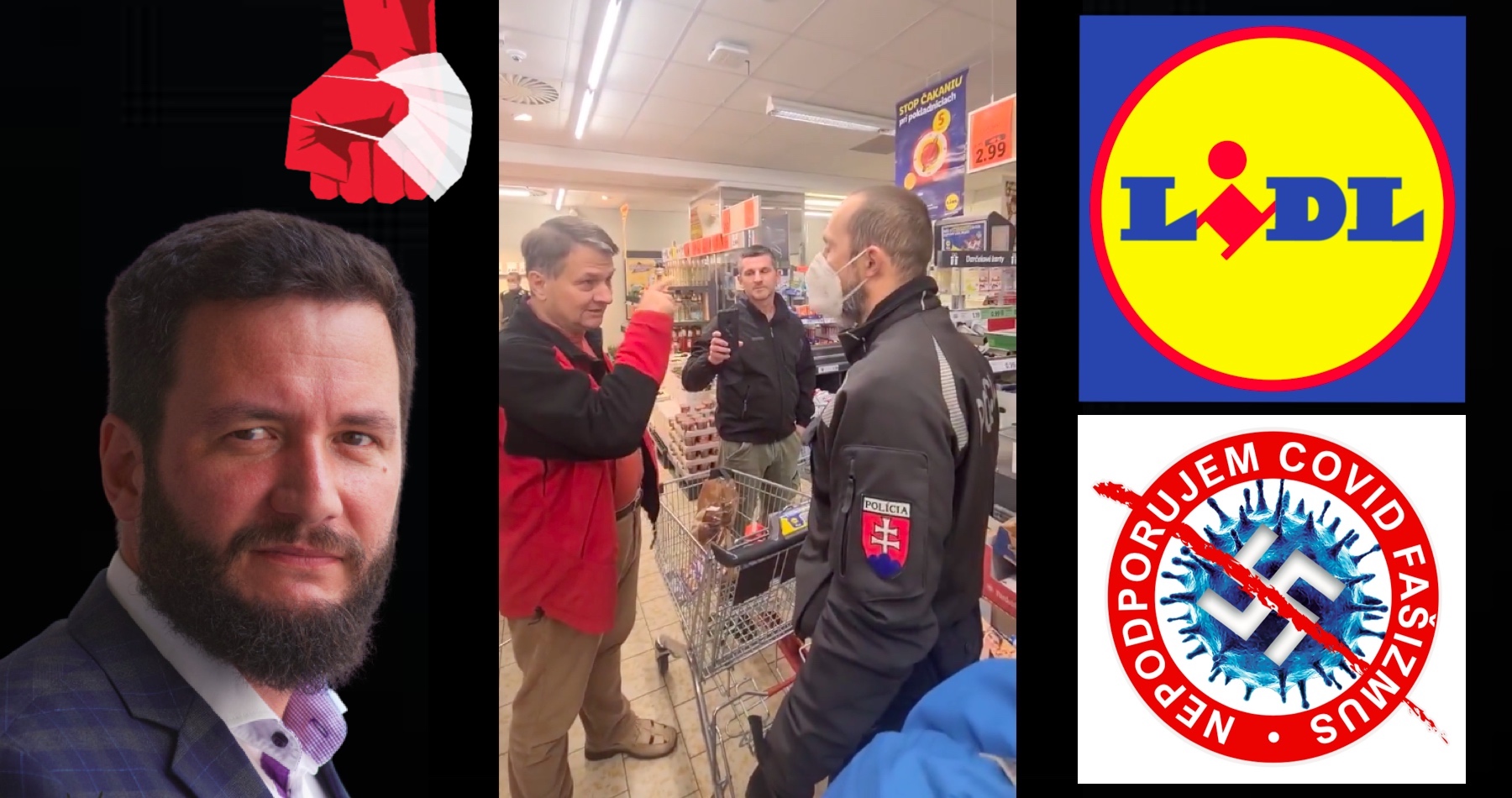 VIDEO: Aktivisti odstavili predajňu LIDL v Prievidzi, odmietli nakupovať s rúškami. Policajti si nevedeli poradiť s rozhodnutím vedúcej predajne, ktorá neumožnila zákazníkom nakupovať