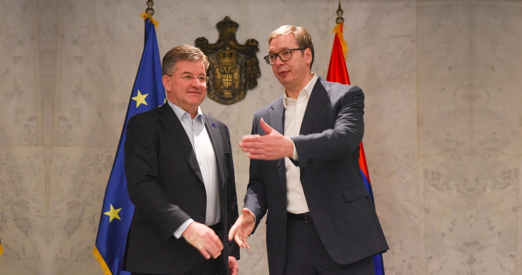 Srbský prezident Aleksandar Vučič si na stretnutí 6. februára 2023 podal v Belehrade ruky s osobitným predstaviteľom EÚ pre dialóg medzi Srbskom a Kosovom Miroslavom Lajčákom