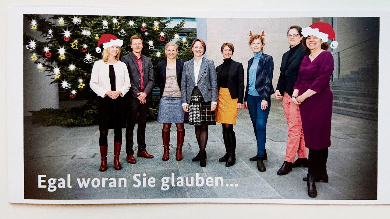 Dokonca aj bulvárny denník Bild považuje za „komické,“ že v deň ramadánu ministerka dokázala zapriať „moslimom a moslimkách“ k ich sviatku, v deň chanuky zapriala „židovským spoluobčanom,“ ale k jednému z najväčších kresťanských sviatkov sa zmohla len na: „Je jedno v čo veríte.“