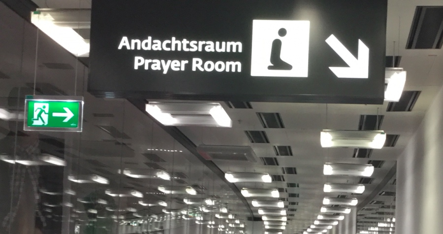 Jedna místnost před odbavovacím prostorem a dvě po odbavení. Muslimové si tak mohou položit modlitební rohož ve třech místech na letišti Schwechat ve Vídni. Nemusíte si brát kobereček s sebou, můžete si ho dokonce půjčit na letišti.