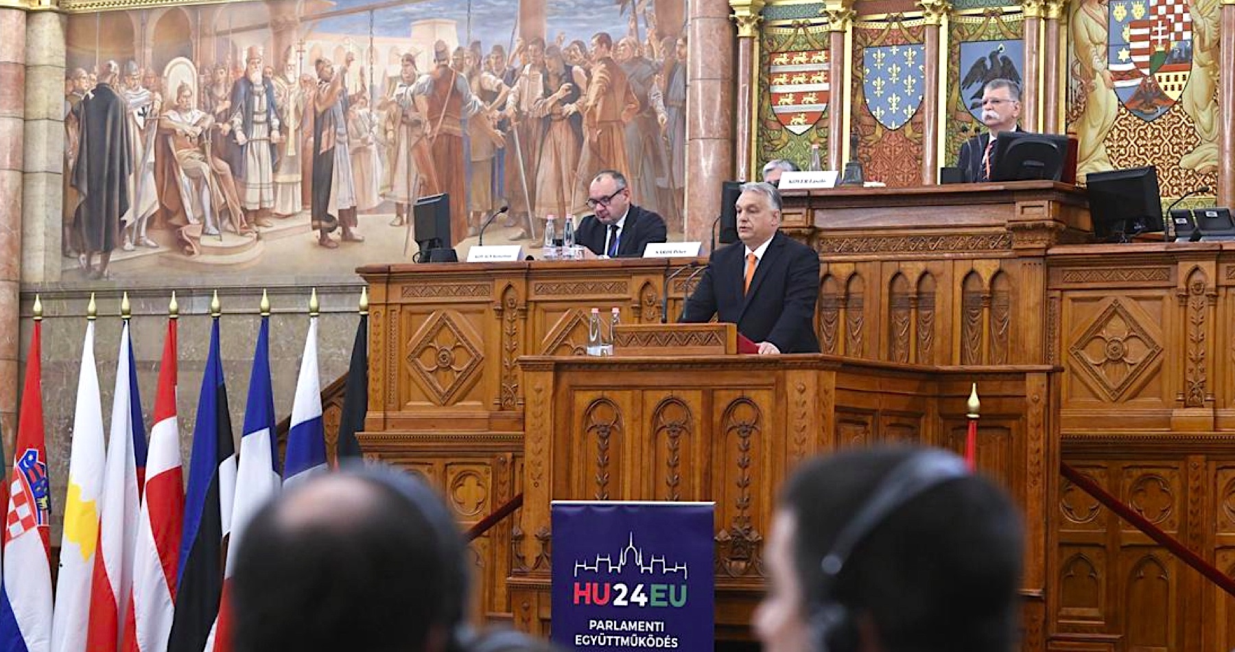 Západná stratégia na zlomenie Ruska zlyhala, sankcie nedosiahli svoj cieľ a Rusi zabránili Ukrajine vstúpiť do NATO. Vyhlásil to v pondelok v maďarskom parlamente premiér Viktor Orbán na konferencii predsedov parlamentov EÚ.