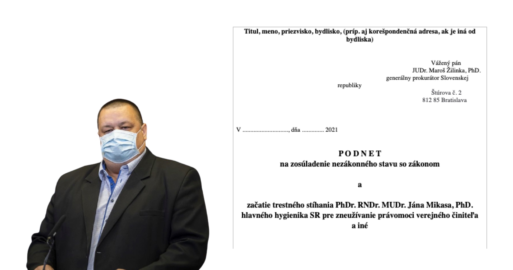 Podnet na zosúladenie nezákonného stavu so zákonom a začatie trestného stíhania Jána Mikasa hlavného hygienika SR nájdete TU.