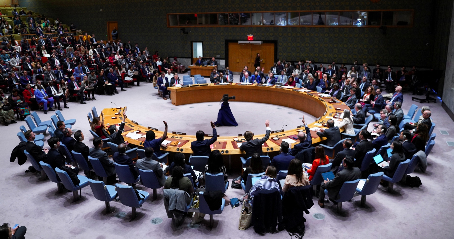 Americký text, ktorý zdôrazňoval právo Izraela na sebaobranu a vyzval na humanitárne prímerie, vetovali Rusko a Čína. Desať krajín rezolúciu podporilo, dve krajiny sa zdržali hlasovania. Proti dokumentu hlasovali aj Spojené arabské emiráty. Ruský návrh obsahujúci požiadavku na humanitárne prímerie podporili len štyri krajiny.