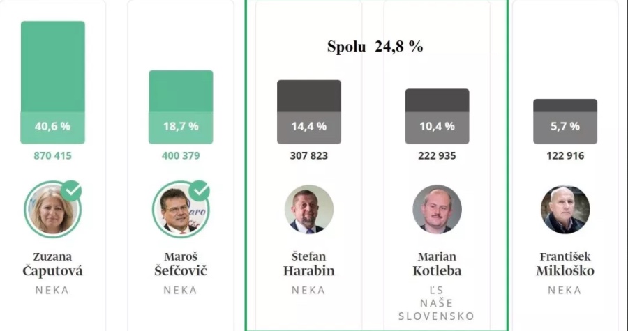 Po zhliadnutí výsledkov prezidentských volieb by sme radi poďakovali kandidátom Štefanovi Harabínovi a Mariánovi Kotlebovi, že po hrdinskom boji medzi sebou a vďaka neschopnosti vzájomnej dohody sa im podarilo konečne dostať do prezidentského kresla človeka, ktorý sa postavil(a) proti „Zlu“, ako je napríklad národná identita, zmena Bruselskej diktatúry EU na združenie nezávislých spolupracujúcich štátov založených na princípoch rovnosti, zastavenie provokácií voči ríši „Zla“ – Rusku, zlepšenia zdravotnej starostlivosti, zvýšenia životnej úrovne väčšinového obyvateľstva, podpora domácej výroby, zastavenie agresívnych vojen NATO, stiahnutie našich vojakov z provokačných misií, a najmä nastolenia právneho štátu.