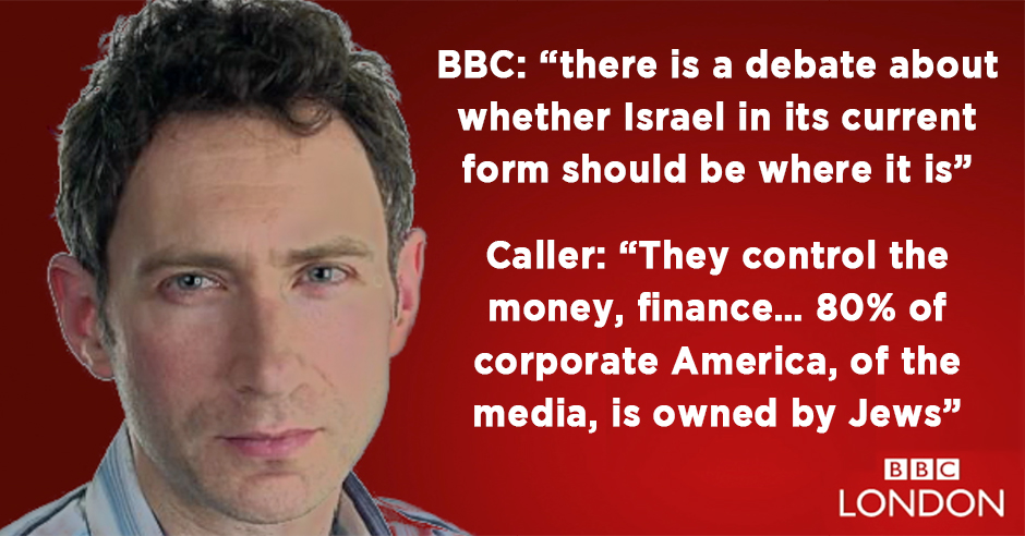Jonathan Sacerdoti, riaditeľ komunikačného oddelenia Kampane proti antisemitizmu (Campaign Against Antisemitism - pozn. prekl.) povedal: “Toto je šokujúce dokonca aj na pomery BBC. Hlásateľ vo vysielaní proste nechal ignorantského rasistu rozprávať takmer štvrť hodiny, pričom neprispel žiadnymi protiargumentmi, korekciou či zatratením jeho názoru, podľa ktorého Židia ovládajú peniaze, banky, obchod a médiá. Očakávame od BBC, že poskytnú informácie o volajúcom polícii.”