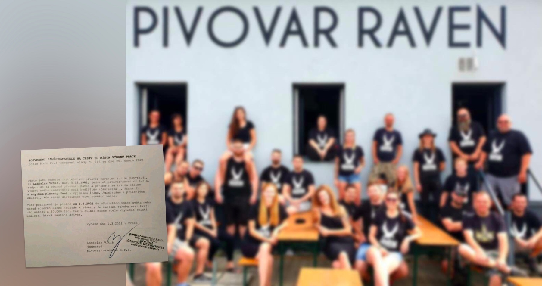 Potvrzení zaměstnavatele na cesty do místa výkonu práce, které vydal plzeňský pivovar Raven, baví internet. Na sociální síti ho od jeho zveřejnění sdílely už tisíce lidí.