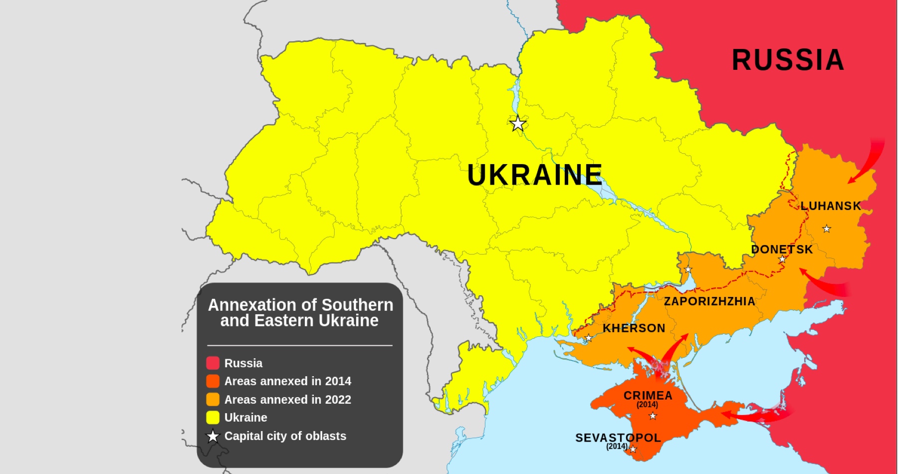 Putin podľa Bloombergu požaduje kontrolu nad ukrajinským Donbasom a Krymským polostrovom, ktorý Moskva anektovala v roku 2014. Chce si ponechať kontrolu aj nad obsadenými časťami Chersonskej a Záporožskej oblasti. Výmenou by sa v týchto regiónoch zastavila ruská ofenzíva pozdĺž súčasnej frontovej línie. Získanie Donbasu by si podľa Bloombergu vyžadovalo, aby Ukrajina stiahla vojská z tých častí Luhanskej a Doneckej oblasti, ktoré Moskva zatiaľ neovláda.