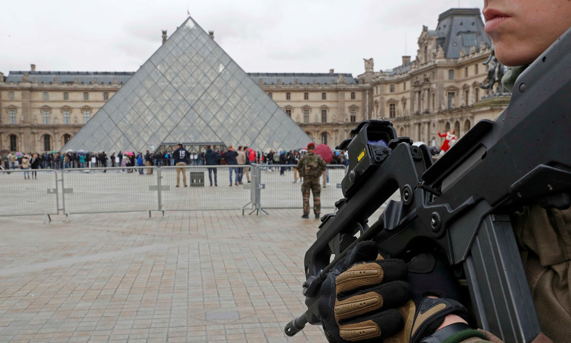Jeden zo zdrojov uvádza, že útočník sa pokúsil vojsť do podzemného obchodného centra múzea, potom zaútočil na vojaka.