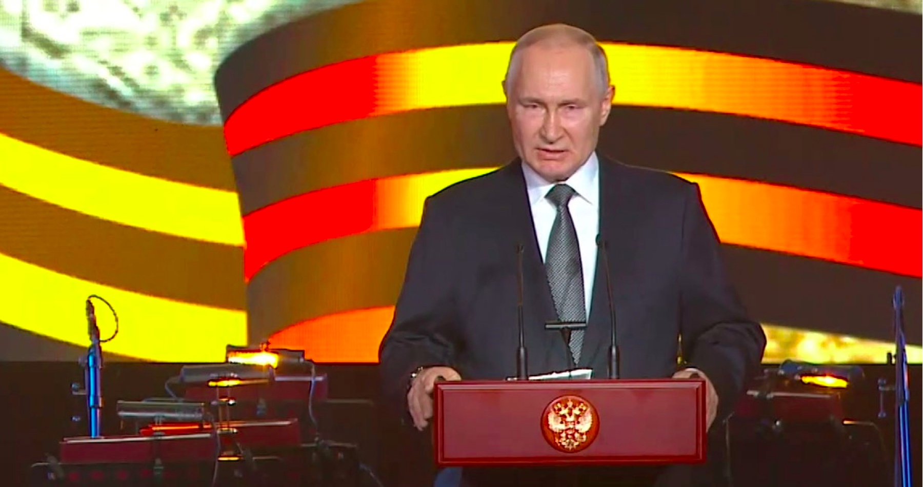 Rusko oznámilo, že využije svoj plný vojenský potenciál proti dodávkam zbraní Ukrajine. Putin poukázal na historickú paralelu, keď jeho krajinu opäť ohrozuje nacistická ideológia a nemecké tanky, tak ako tomu bolo počas druhej svetovej vojny. „Pripravenosť ísť až na koniec a spraviť aj nemožné pre svoju vlasť a pre pravdu je v krvi a v povahe nášho ľudu,“ vyhlásil ruský prezident