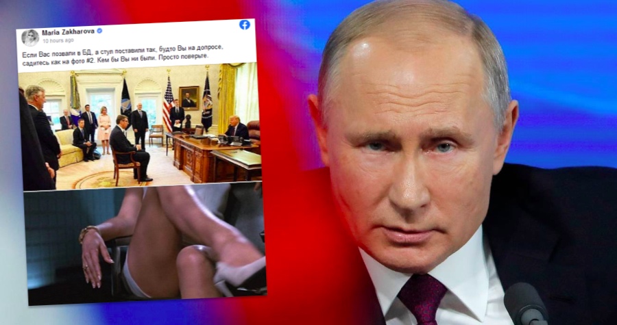 Zacharovová zverejnila fotografiu Vučiča, ako sedí oproti americkému prezidentovi Donaldovi Trumpovi v Bielom dome, a pod ňou záber nôh herečky Sharon Stoneovej. Provokatívna snímka skrížených nôh pochádza z filmu "Základný inštinkt", kde sa postava v stvárnení Stoneovej pred vyšetrovateľmi nakrátko obnaží.