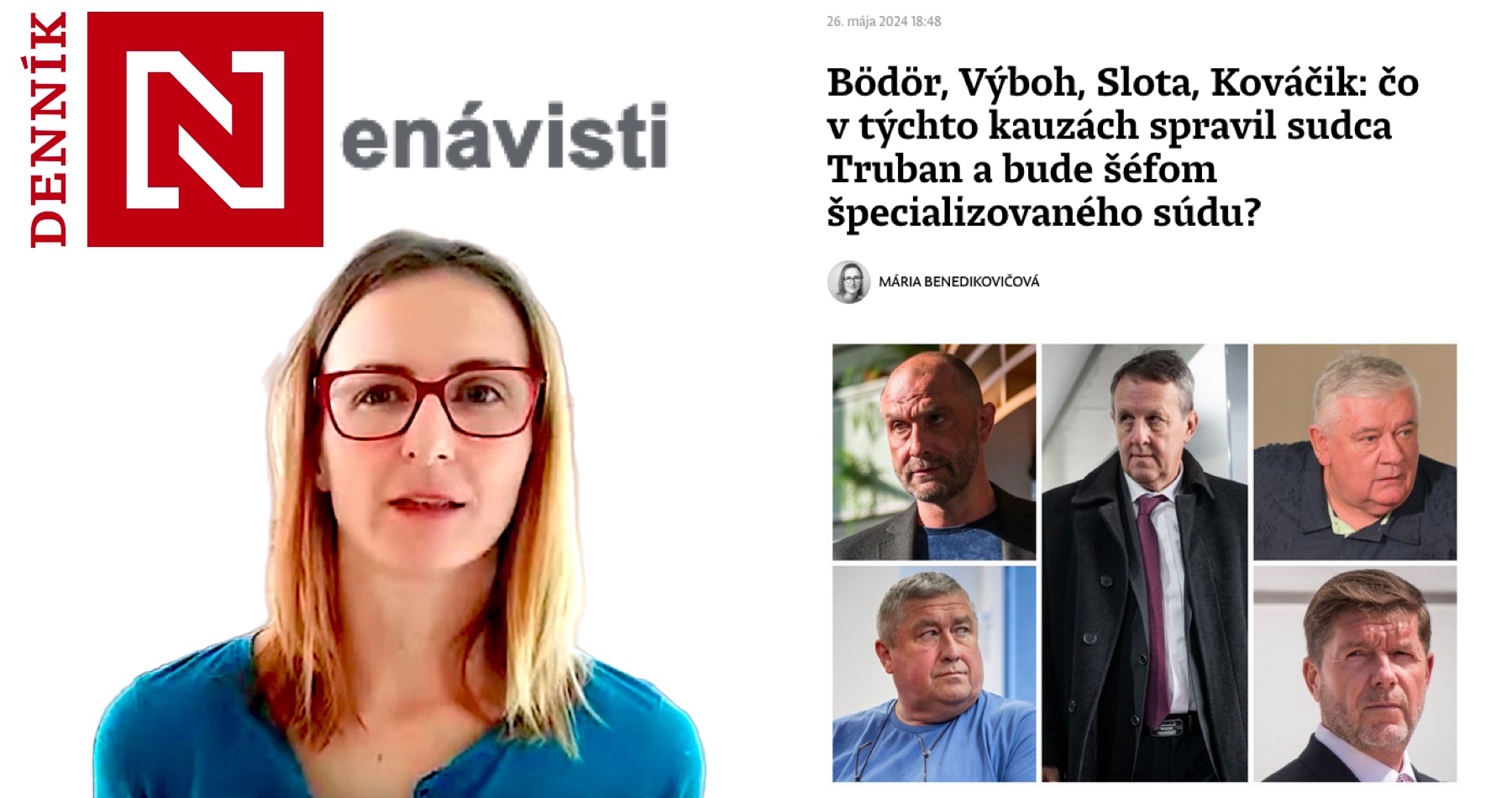 Redaktorka Denníka N Benedikovičová dostala po nose po tom, ako vo svojich článkoch hrubo manipuluje verejnosť o dôvodoch odchodu sudcu Hrubalu z čela špeciálneho súdu, ktorý nezákonne od polície zhromažďoval informácie nielen na sudcu ŠTS Trubana, ale aj na jeho dcéru - advokátku. Tá manipulátorke odkázala, aby sa zamyslela nad tým, ako takýmito dezinformáciami a dvojakým metrom ešte viac prispieva k stupňujúcej sa polarizácii a šíreniu nenávisti v spoločnosti