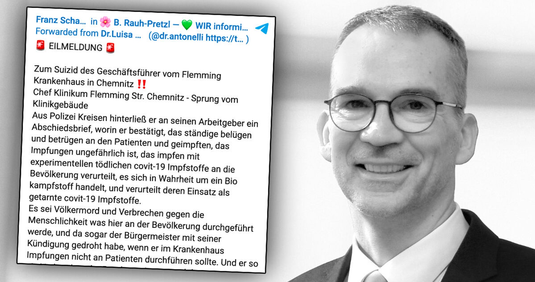 In Germany, the Head of the Chemnitz Clinic, Dr Thomas Jendges, committed suicide saying he no longer wants to be part of the Genocide happening vis the COVID-19 Vaccine.#STESSNews #breakingnews #COVID19 #pandemic #covid19 #CovidVaccines #Corona #coronavirus #Covid_19 pic.twitter.com/8sN8mjG43w
