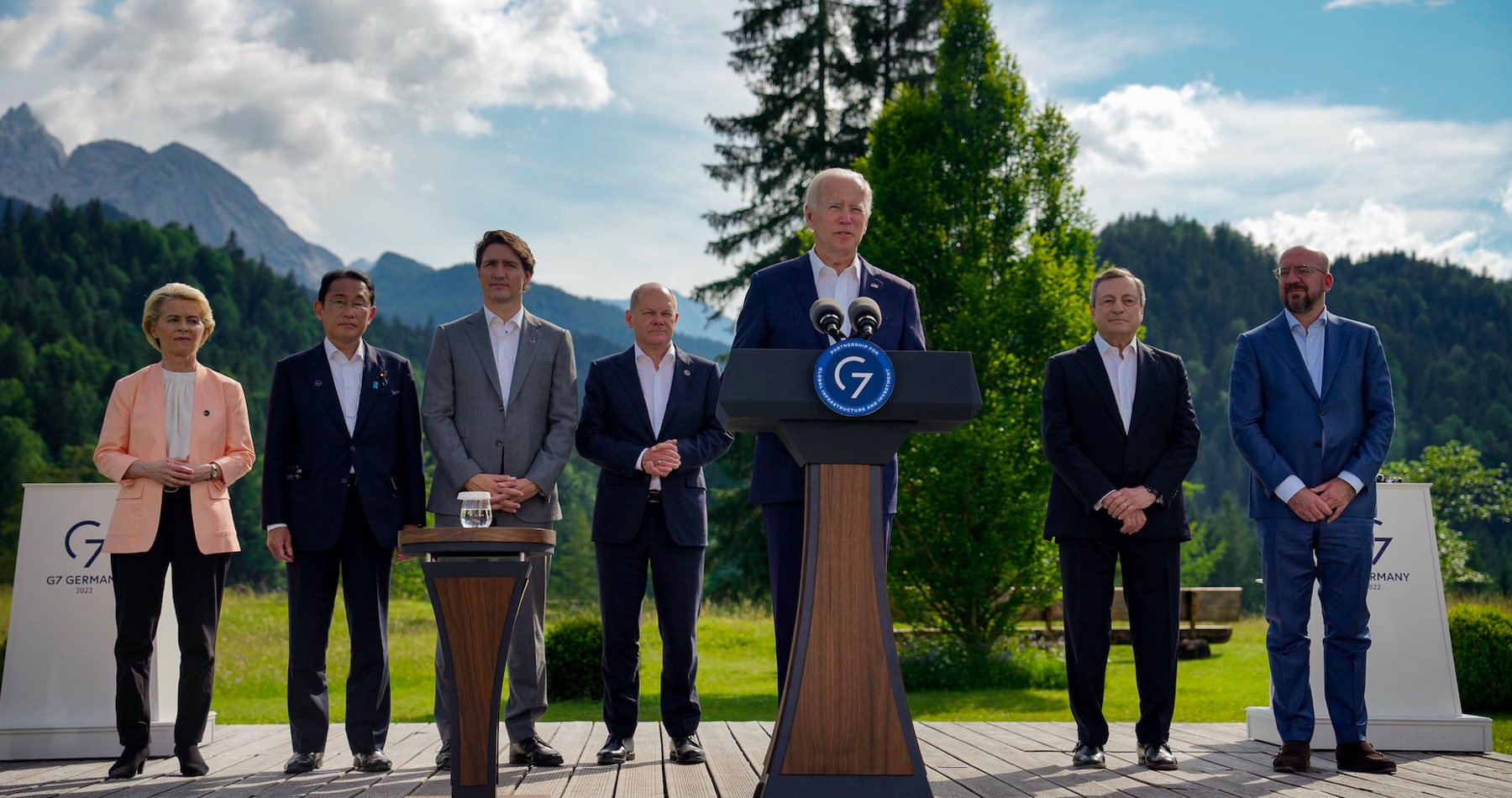 "Toto nie je pomoc ani charita," povedal Biden v nedeľu počas svojho prejavu na zámku Schloss Elmau v Nemecku. "Je to investícia, ktorá prinesie návratnosť všetkým vrátane amerického ľudu a ľudu všetkých našich krajín."