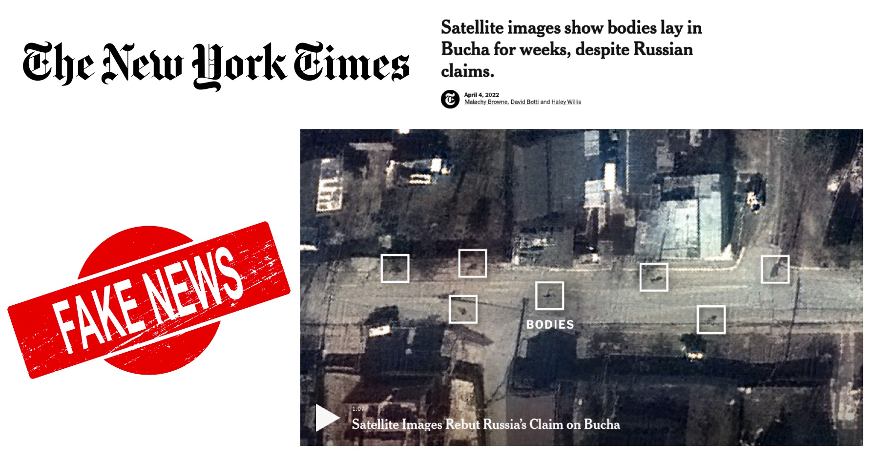 Londýnu a jeho loutkovému Kyjevu se den za dnem hroutí jeho dezinformační operace proti Ruské federaci s názvem “Buča” a každý den se objevují další a další trhliny v oficiálním příběhu Západu. Posledním výbuchem je vyvrácení článku listu The New York Times, který před pár dny ze zpravodajských zdrojů a údajně od americké satelitní služby obdržel fotografie z oběžné dráhy nad Bučou pořízené prý 19. března. Na fotografiích je vidět ona inkriminovaná filmová silnice a na ní jsou jasně vidět vyskládané mrtvoly po obou stranách silnice. Vypadá to děsivě, vypadá ta důvěryhodně a seriózně. Jenže… je to podvrh! Skupina vyšetřovatelů OSINT (Open Source Inteligence) této historce neuvěřila a začala pátrat po zdrojích satelitních snímků.