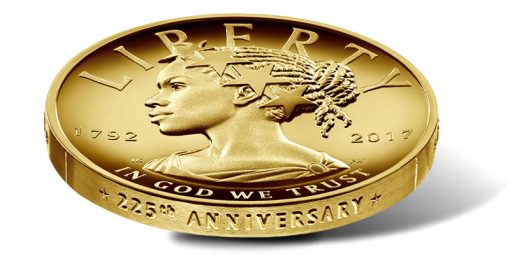Sloboda je na americkej zlatej minci zobrazená ako černoška