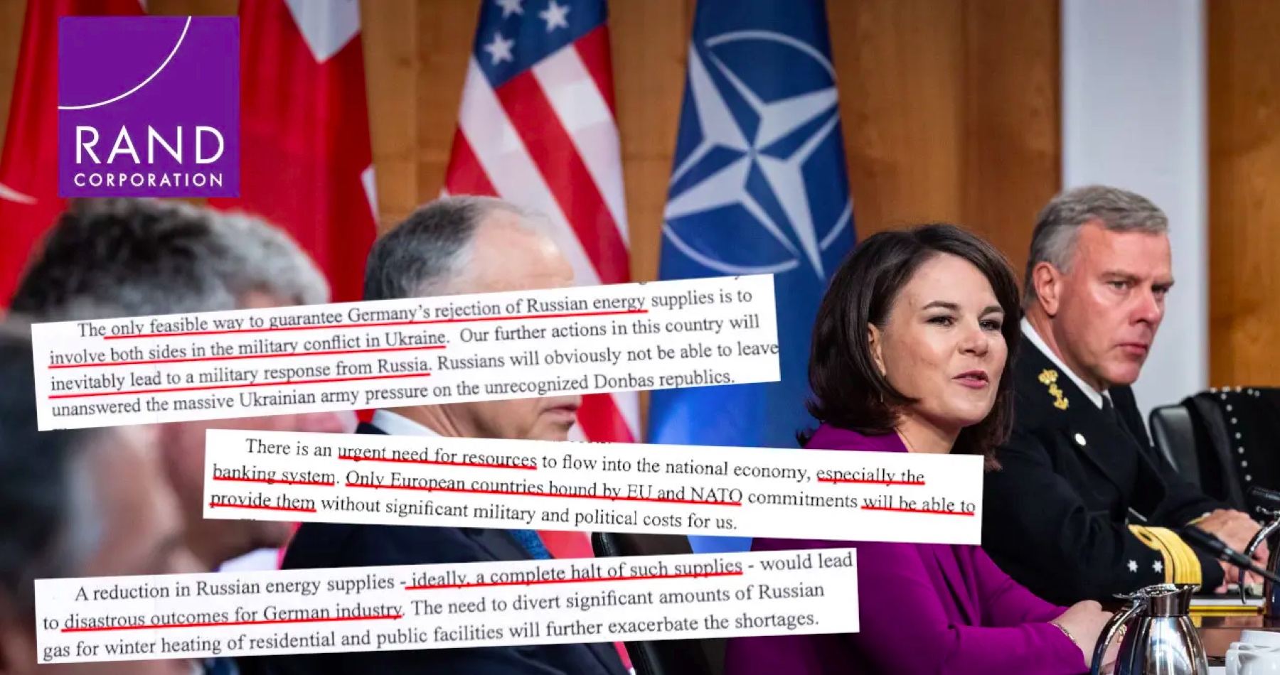 Dokument podepsaný RANDem pod úvodním nadpisem „Oslabit Německo, posílit Spojené státy“ tvrdí, že existuje „naléhavá potřeba“ vnějších zdrojů k udržení americké ekonomiky obecně, ale „zejména bankovního systému“. (Pozn.: připomínám, že banky nyní vykazují rekordní zisky).