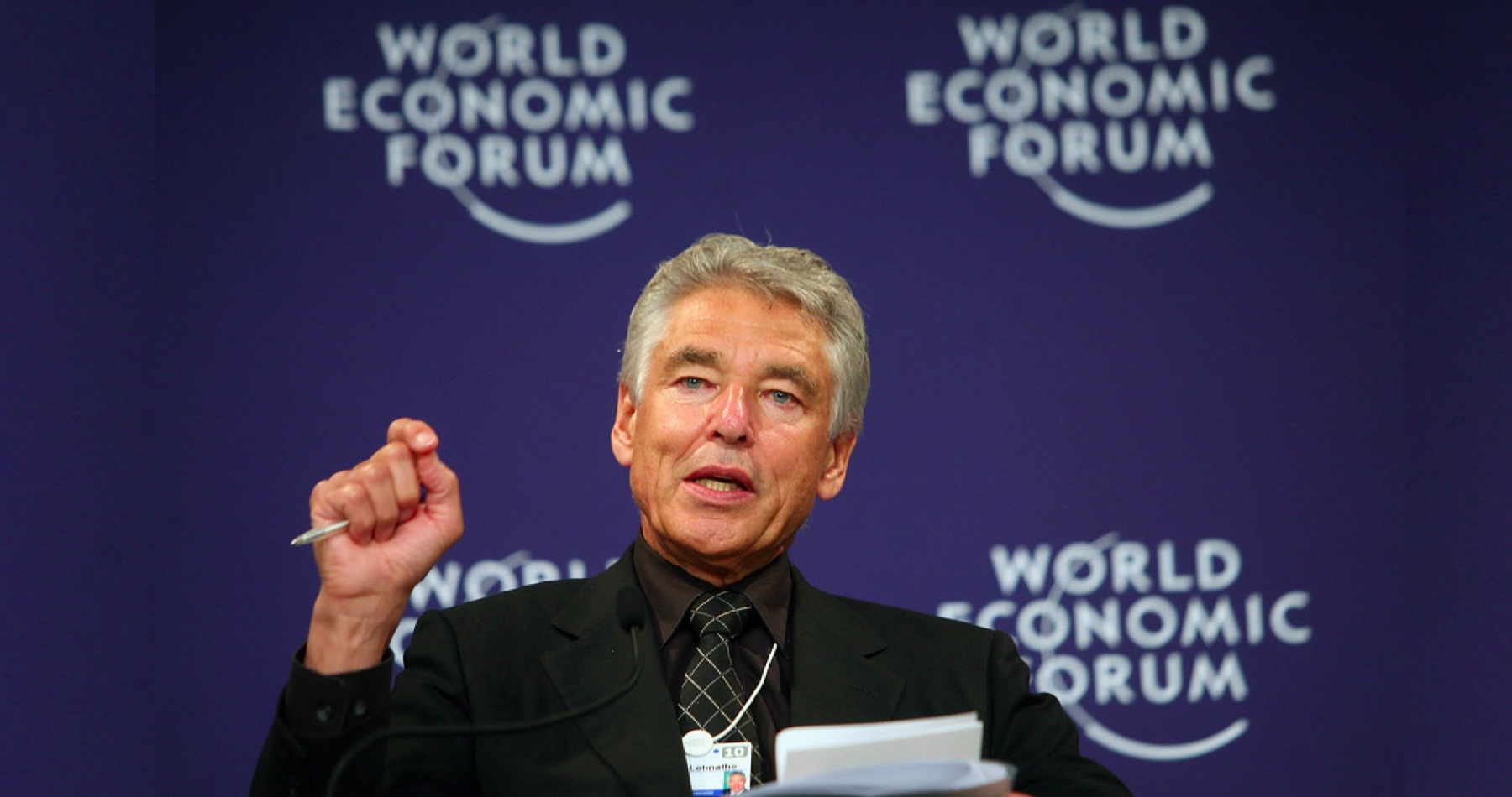 Úradujúcim predsedom je 80-ročný Peter Brabeck-Letmathe (na snímke), do ktorého „histórie“ patria Nestlé, Credit Suisse Group, Geneva Science and Diplomacy Anticipator Foundation atď. Skrátka „ženevské peniaze“.