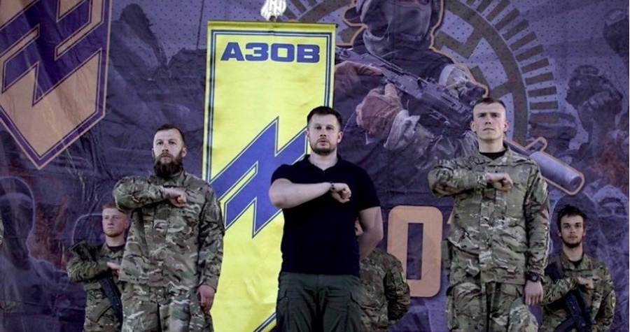 Azovu, ktorý verbuje neonacistov z celej Európy pod vlajkou s pôvodom vlajky SS Das Reich, velí jeho zakladateľ Andrej Biletsky, povýšený na plukovníka [2]. Nie je to len vojenská jednotka, ale ideologické a politické hnutie, ktorého je Biletsky charizmatickým vodcom, najmä pre mládežnícku organizáciu, ktorú vychováva k nenávisti k Rusom svojou knihou "Slová bieleho führera".