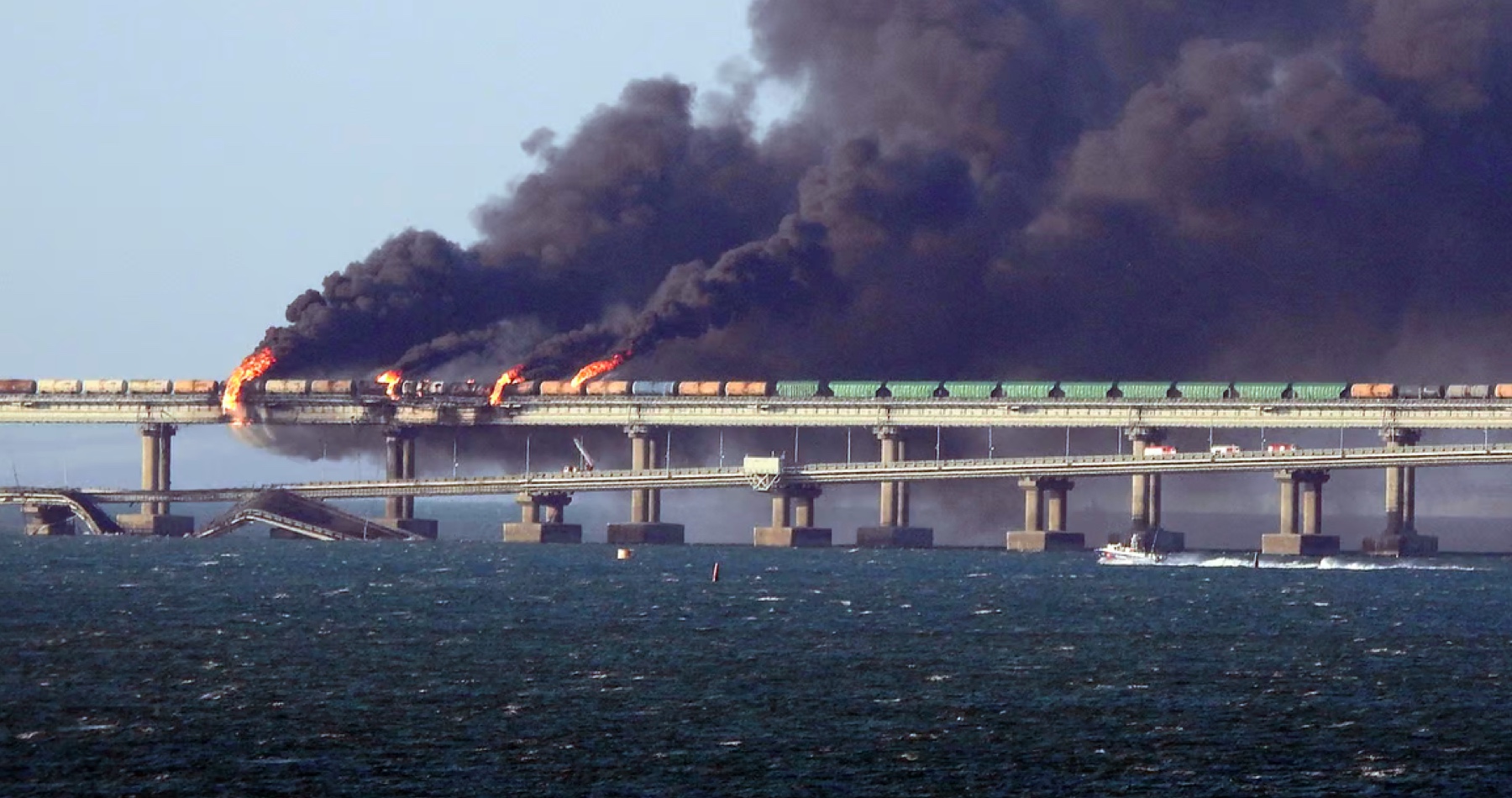 Za úsvitu 8. října poškodil Kerčský most pyrotechnický útok. Výbuch nákladního auta způsobil požár několika cisteren s ropou na souběžné železniční trati a zřícení dvou mostních polí směřujících na Krym do moře, včetně tří mrtvých lidí.
