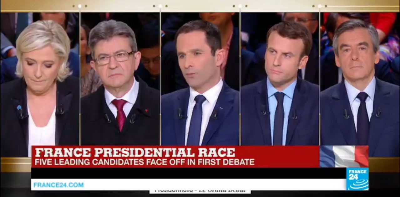 Dráma na Champs-Elysées sa odohrala v čase, keď sa v štúdiu televízie France 2 konala posledná debata všetkých 11 kandidátov. Téma terorizmu sa tak stala hlavnou témou ich vystúpení. Útok v centre Paríža pritom všetci rozhodne odsúdili. Fillon vo svojom vystúpení vyjadril solidaritu “čoraz viac znepokojenému francúzskemu národu”. Nicolas Dupont-Aignan ocenil prácu policajných zložiek vo Francúzsku a vyhlásil, že najlepšou poctou pre policajtov zabitých v službe by bolo “zasiahnuť proti barbarom, ktorí ohrozujú naše životy”.