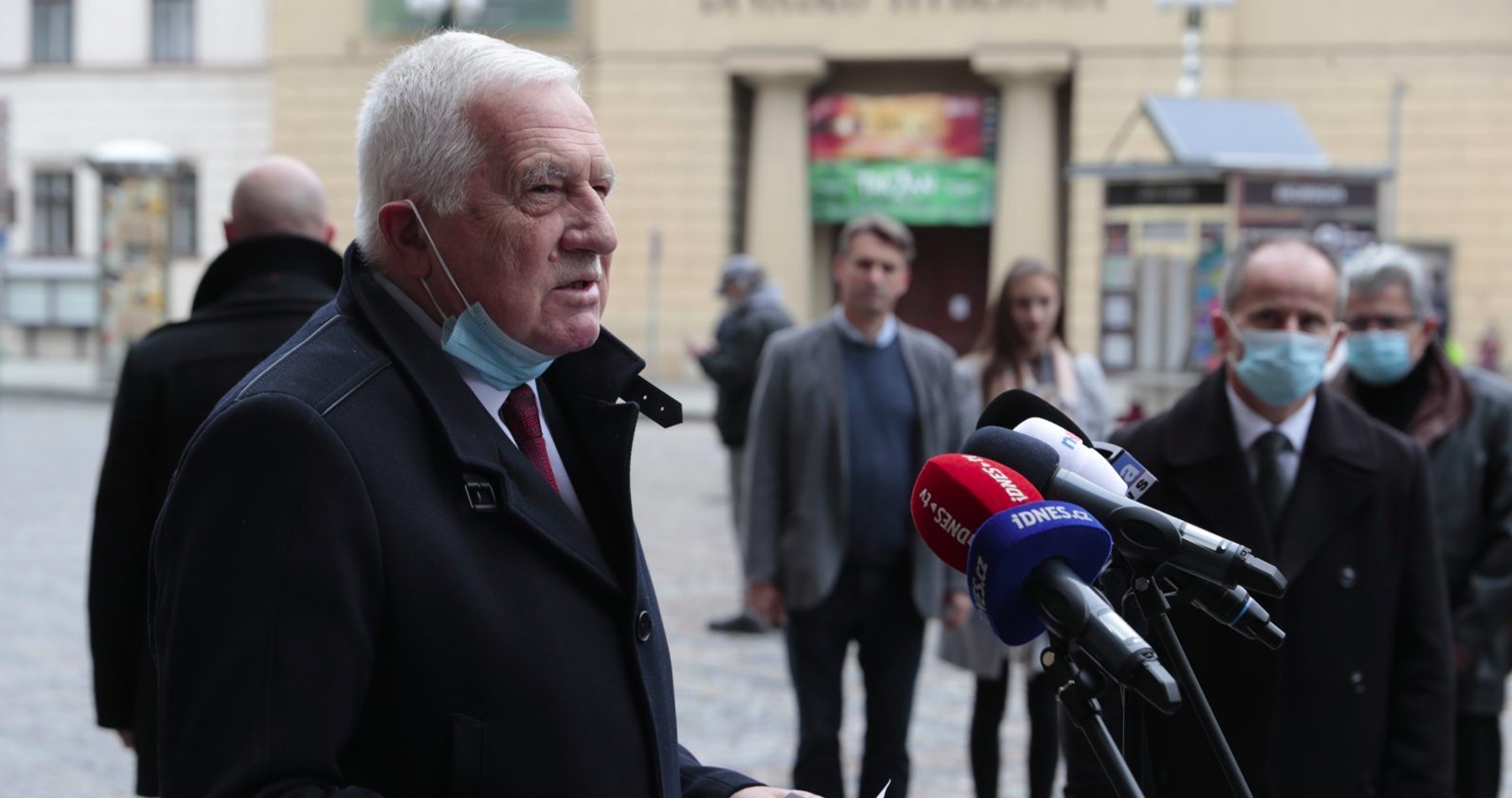 Klaus prišiel vlani 28. októbra pred Obecný dom uctiť si pamiatku vzniku Československa. Pri pamätnej doske vystúpil s prejavom, v ktorom kritizoval vládne opatrenia proti koronavírusu. Na akcii nemal napriek vládnym opatreniam nasadené rúško.