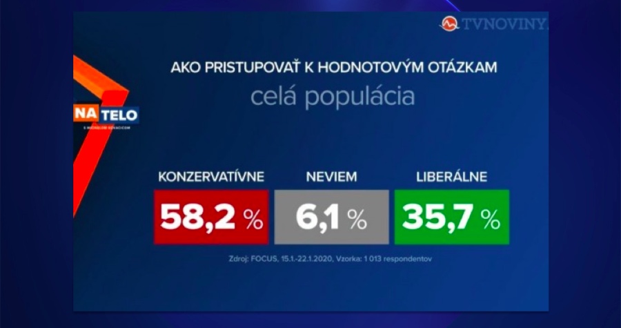 Agentúra položila respondentom otázku v znení: „Niektorí konzervatívni politici varujú pred hrozbami liberalizmu, ako sú napríklad zavedenie registrovaných partnerstiev pre páry rovnakého pohlavia alebo podpora Istanbulského dohovoru, ktoré podľa nich narúšajú tradičné spoločenské hodnoty. Liberálni politici, naopak, hovoria, že musíme byť tolerantní k iným a rešpektovať ich práva a že liberálne hodnoty nie sú žiadnym ohrozením pre morálku spoločnosti. Aký máte na to názor vy?“