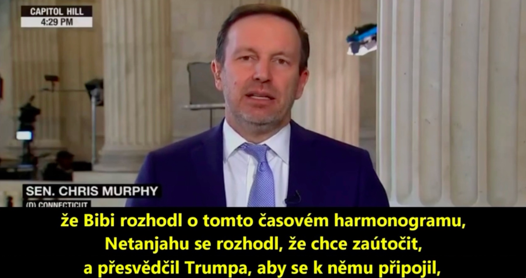Americký senátor Chris Murphy na dotaz reportérky, kdo vlastně může za vtažení USA do války s Íránem odpověděl, že s největší pravděpodobností za to může Bibi, tedy Benjamin Netanjahu, a potažmo Izrael. Je to prý nejlogičtější vysvětlení, které podle senátora vrhá na USA světlo velmi slabé země, která nemá vlastní rozhodování, protože o tom, kam a kdy se půjde do války, o tom rozhoduje izraelský premiér, ne americký prezident.