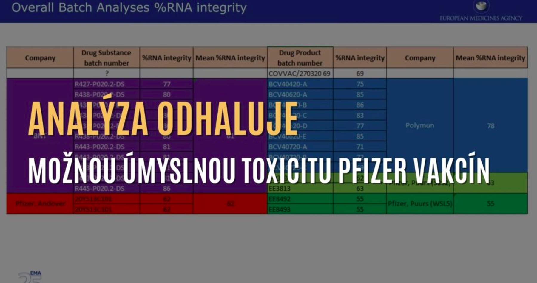 VIDEO: Analýza naznačuje možnou 50% toxicitu u prvně vyrobených vakcín od Pfizeru