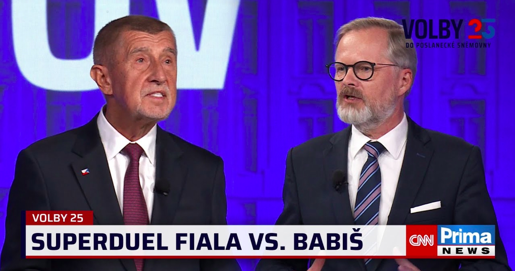 V dueli pred voľbami do Poslaneckej snemovne českého parlamentu sa v televízii CNN Prima NEWS v stredu 1. októbra 2025 prvýkrát stretli súčasný premiér a líder koalície SPOLU Petr Fiala s expremiérom a predsedom ANO Andrejom Babišom. Podľa Fialu hrozí, že vláda hnutia ANO by spolu s SPD a Stačilo! mohla spochybniť členstvo Česka v EÚ a NATO. To Babiš dôrazne odmietol a odmietol aj spojenectvo s hnutím Stačilo!. V otázke pomoci Ukrajine však uviedol, že Česko nemá peniaze ani pre svojich občanov, tak Ukrajinu vojensky podporovať nemôže.