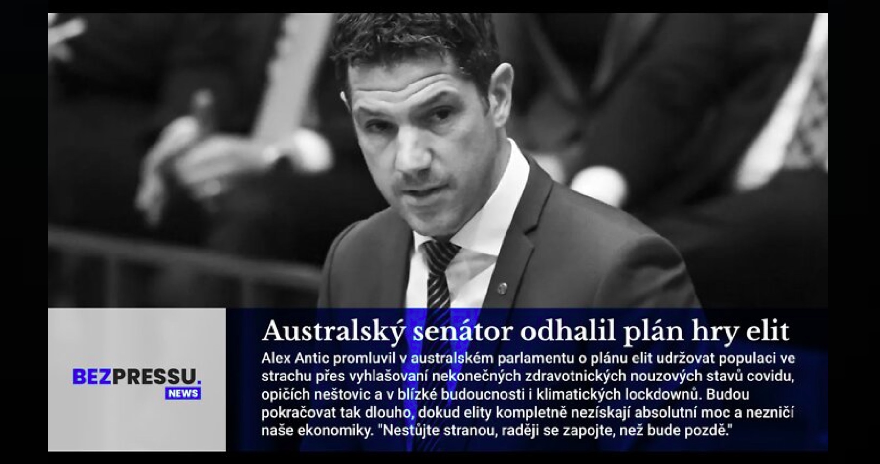 Alex Antic promluvil v australském parlamentu o plánu elit udržovat populaci ve strachu přes vyhlašovaní nekonečných zdravotnických nouzových stavů covidu, opičích neštovic a v blízké budoucnosti i klimatických lockdownů. Budou pokračovat tak dlouho, dokud elity kompletně nezískají absolutní moc a nezničí naše ekonomiky.