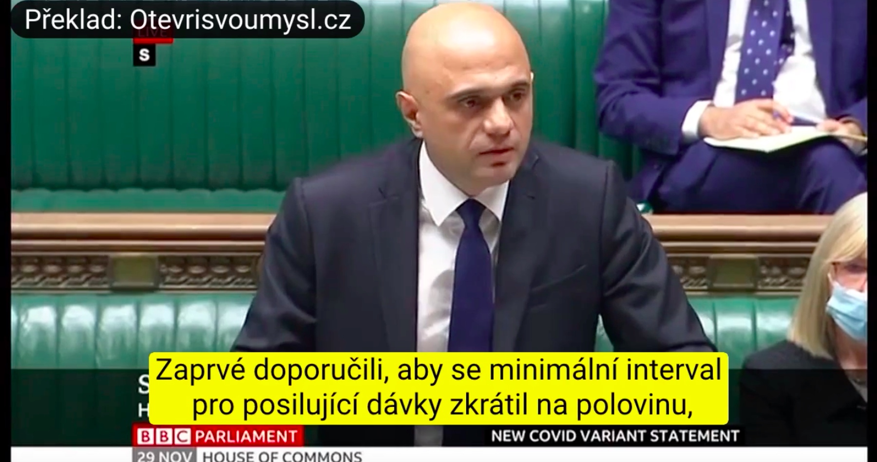 Ministr zdravotnictví (UK): CVI v poslední hodině představili svá doporučení. Zaprvé doporučili, aby se minimální interval pro posilující dávky zkrátil na polovinu, ze šesti měsíců na tři měsíce. Za druhé. Očkování posilujícími dávkami by se mělo rozšířit na všechny zbývající dospělé ve věku 18 a více. Za třetí. Tyto posilující dávky by měly být nabídnuty v sestupném pořadí podle věkové skupiny, abychom ochránili ty nejvíce zranitelné vůči viru.