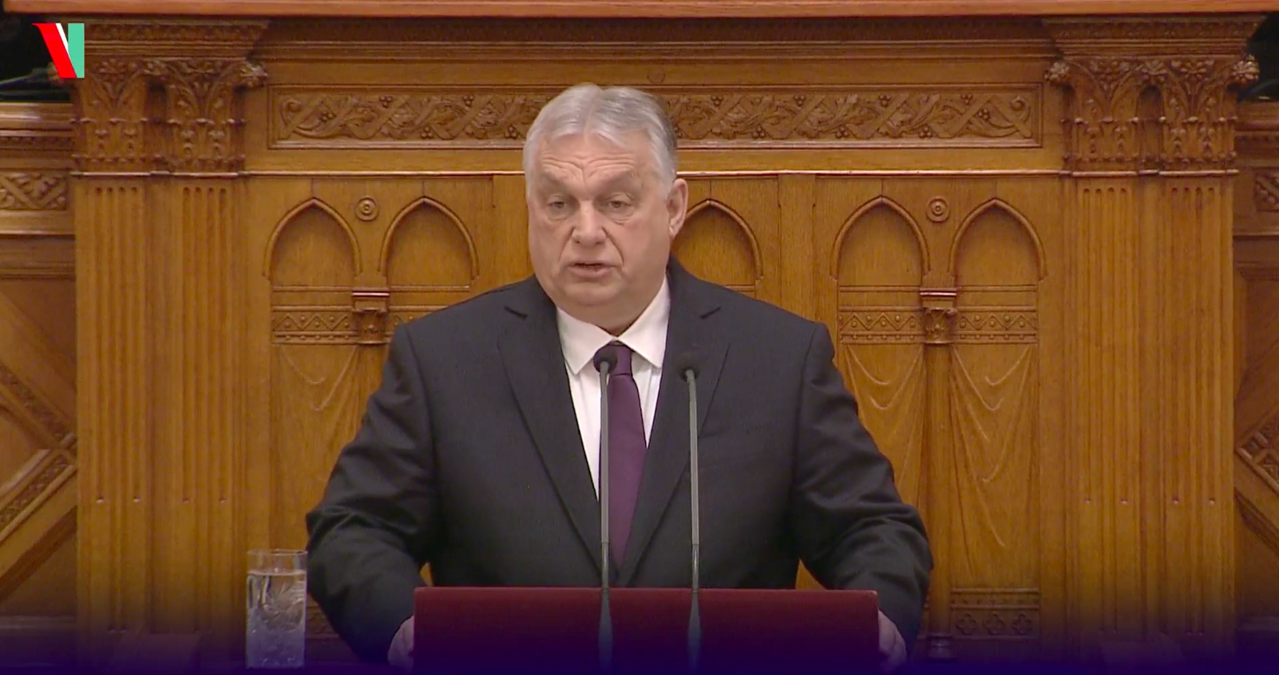 Orbán v prejave informoval o krokoch a opatreniach vlády k mimoriadnej snehovej situácii, o preplatení 30 percent nákladov domácností na vykurovanie v januári, o rozšírení daňových úľav pre matky, o zvýšení minimálnej mzdy o 11 percent, ale aj o 13. dôchodku a zavedení 14. dôchodku. V závere vyzval parlament, aby podporil snahy kabinetu zabrániť vtiahnutiu Maďarska do vojny.