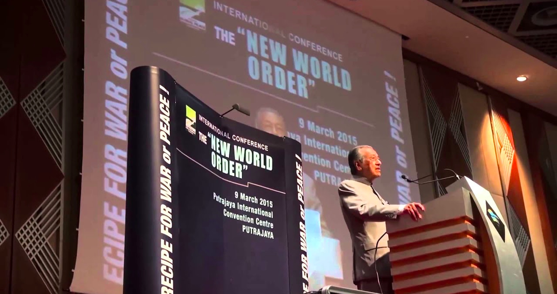 Na medzinárodnej konferencii s názvom: "Nový svetový poriadok, recept na vojnu, alebo mier, organizovanej Globálnou nadáciou Perdana v roku 2015 prehovoril bývalý premiér Malajzie Dr. Mahatir Mohamed.