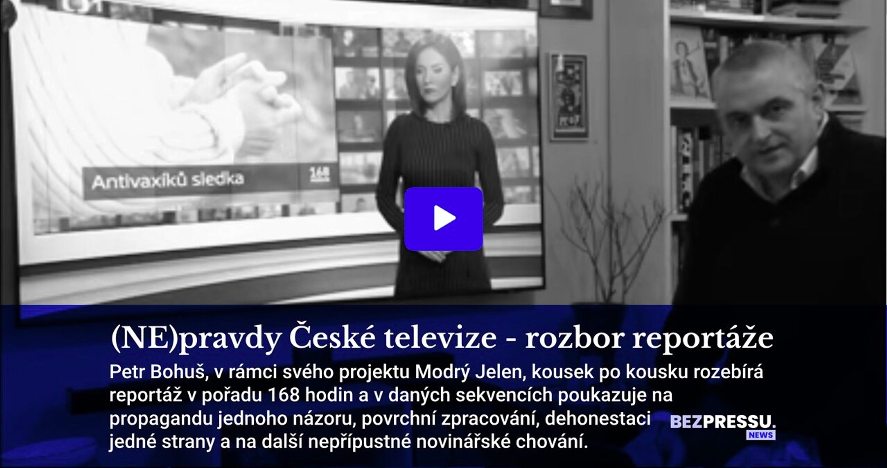A Zde Petrův první rozbor, v tomto případě reportáže z pořadu 168 hodin s názvem Antivaxíků sledka. Jak sám Petr komentuje: „Nezodpovědná propaganda jednoho názoru, povrchní zpracování, dehonestace jedné strany, uctívání strany druhé. Černobílé vidění světa. Za peníze koncesionářů, tedy plátců nikoliv jedné strany.“