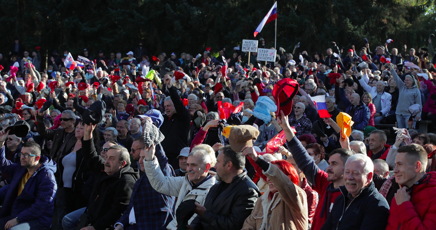 Napriek slovám dočasného policajného prezidenta Štefana Hamrana, že voči protestujúcim, ktorí nebudú dodržiavať epidemiologické opatrenia tvrdo zakročia, k ničomu podobnému nedošlo. Pred vstupom do amfiteátra síce každému dezinfikovali ruky, no v areáli drvivá väčšina ľudí nemala rúška.