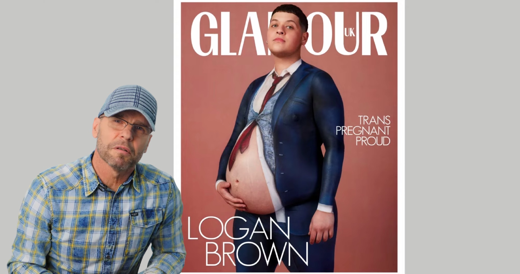 Bytosť na obrázku z internetového portálu časopisu (27-ročný človek s menom Logan Brown) je biologická žena, ktorá sa cíti ako muž a preto sa „prerába“ na muža a žije s mužom, ktorý verejne vystupuje ako „non-binárny (= nepohlavný) „drag queen“.